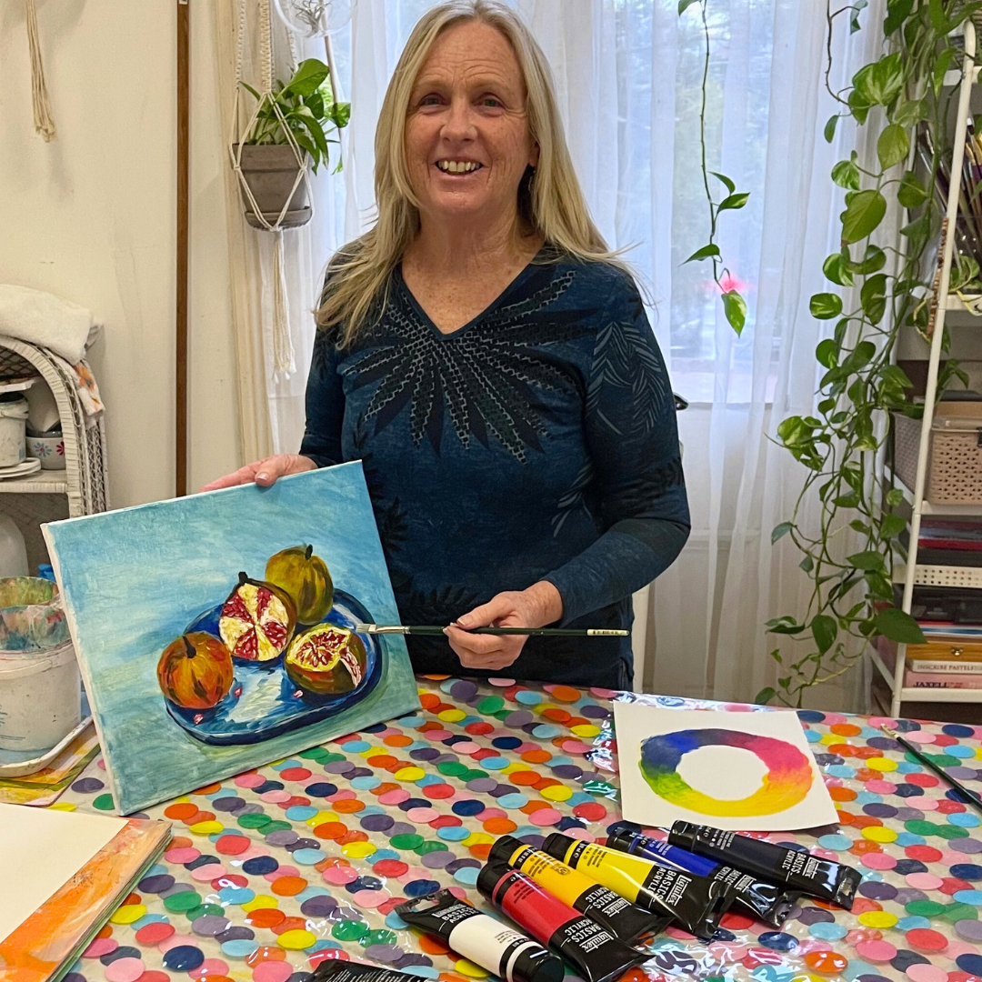 In the morning, you’ll explore blending, layering, texture, and colour mixing through a series of mini exercises. Then in the afternoon, you’ll create your own still life painting on canvas, working step-by-step with inspiration from flowers and simple objects.